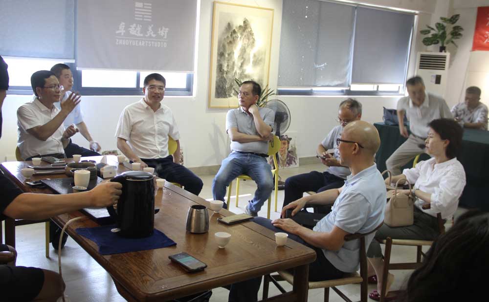 省委统战部新阶处处长黄致秋(左四),市委统战部副部长黄文龙(左三),龙文区常委、统战部部长黄庆云(右一) 、漳州画院院长沈惠文(左一)等领导和学者莅临卓越美术调研指导