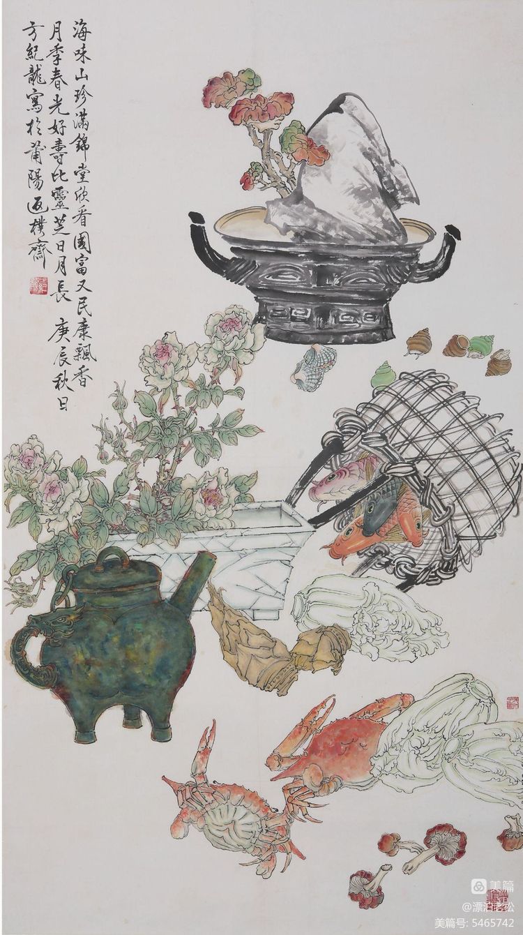 方纪龙的工笔画以线描为主,勾勒传神行笔微颤,流转中寓迟涩,而顿挫中含腴润,可感到行笔的专注与力度,从而避免了大多线描勾勒的疾滑、率易从而令人产生的单薄、枯索之病。应该说,在线描艺术上,他的作品是继陈子奋之后,达到较高水准的一位。