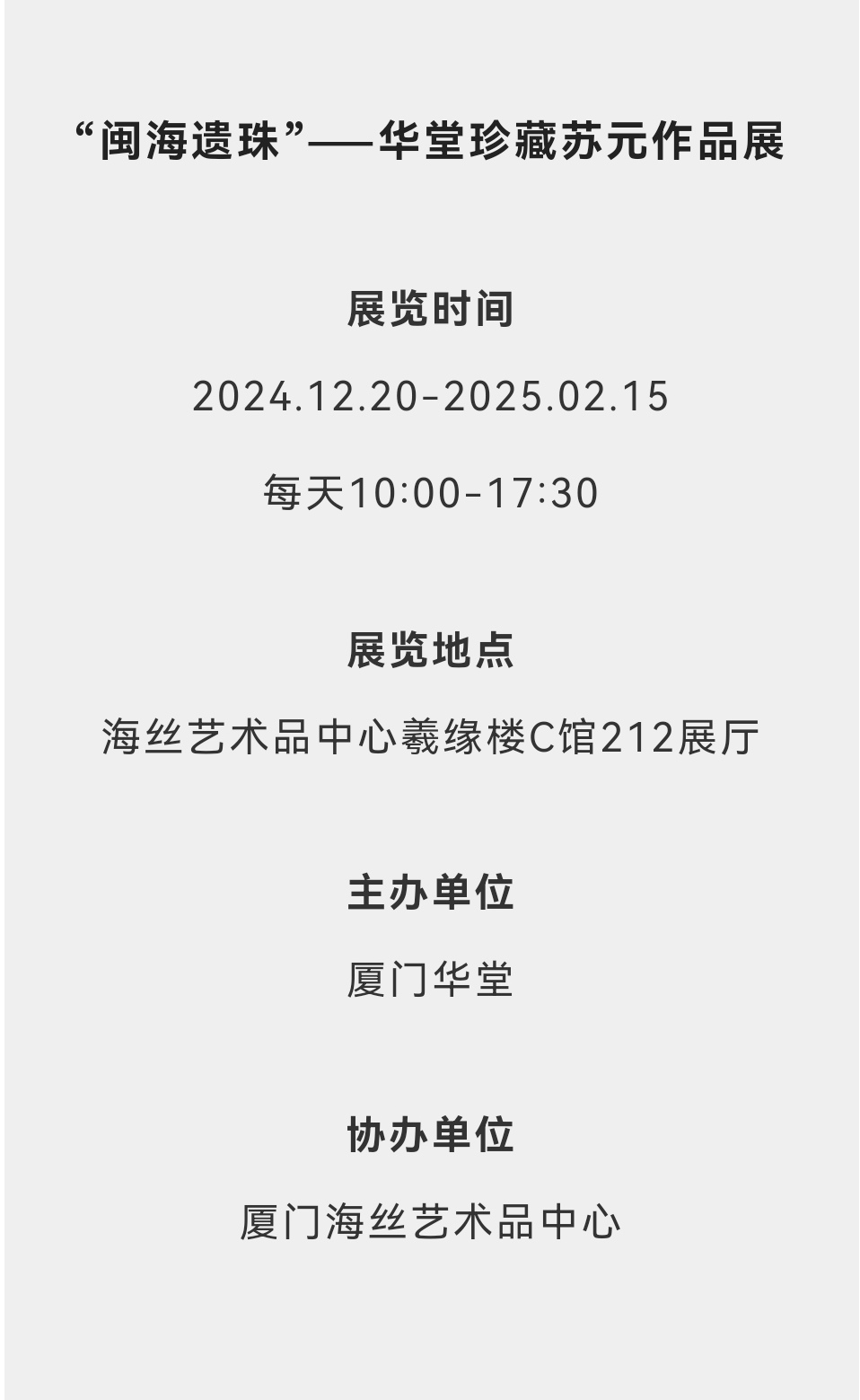 丹诏之地,自古钟灵毓秀,人文荟萃,素有“书画之乡”的美誉。华堂创始人生长于斯,自幼便耳濡目染,钟爱丹青,浸润于水墨流韵之间。凭一腔热忱,卅余年以书画鉴赏、交流、推广为务,亦致力于福建画史之研究。为庆乙巳新春,今将经年所藏近二十幅苏元画作公开展示,期于华堂之内,聚清末艺海之遗珍。