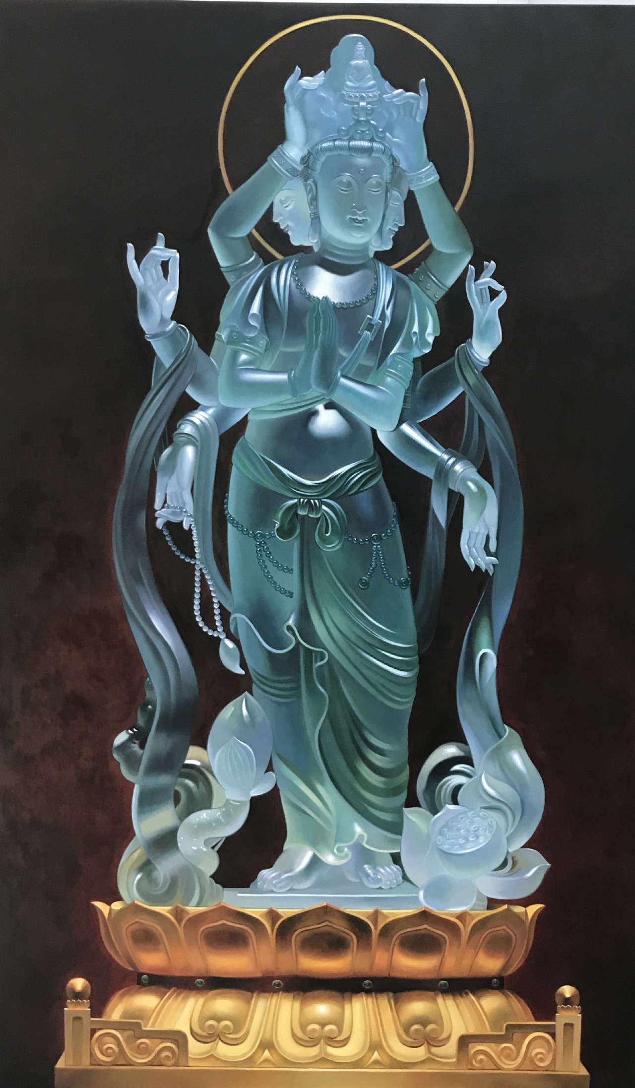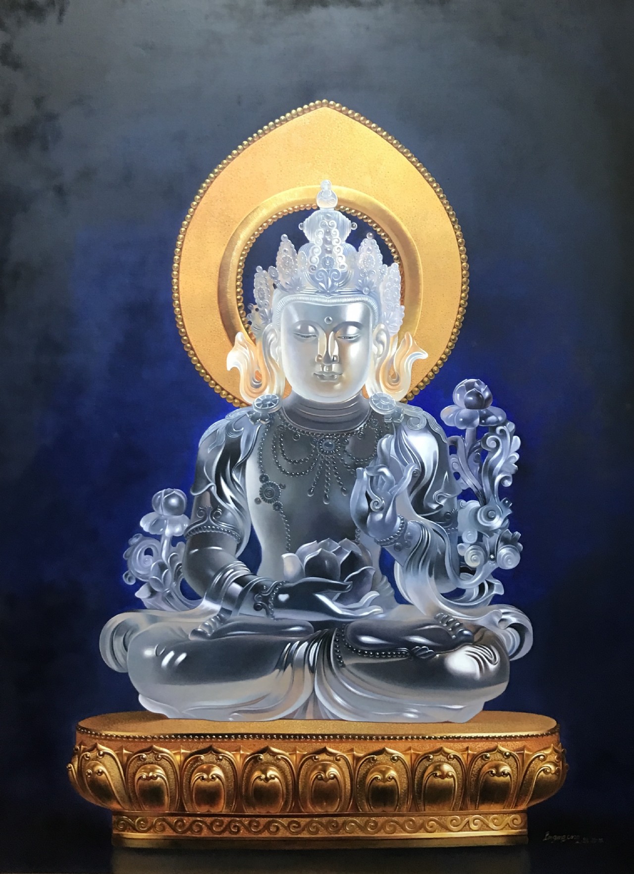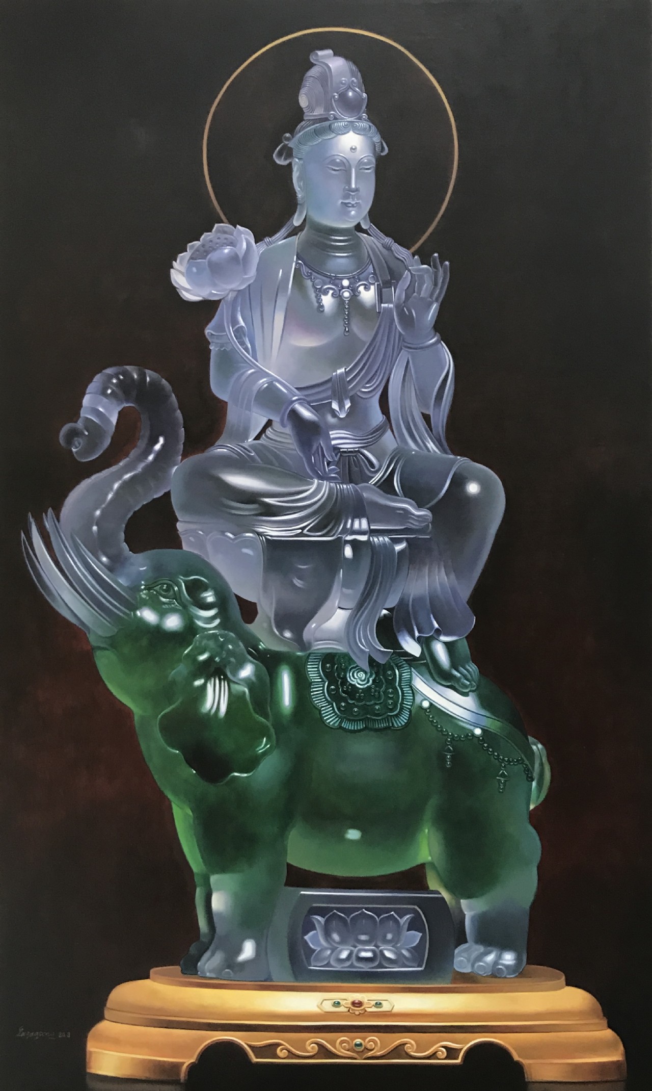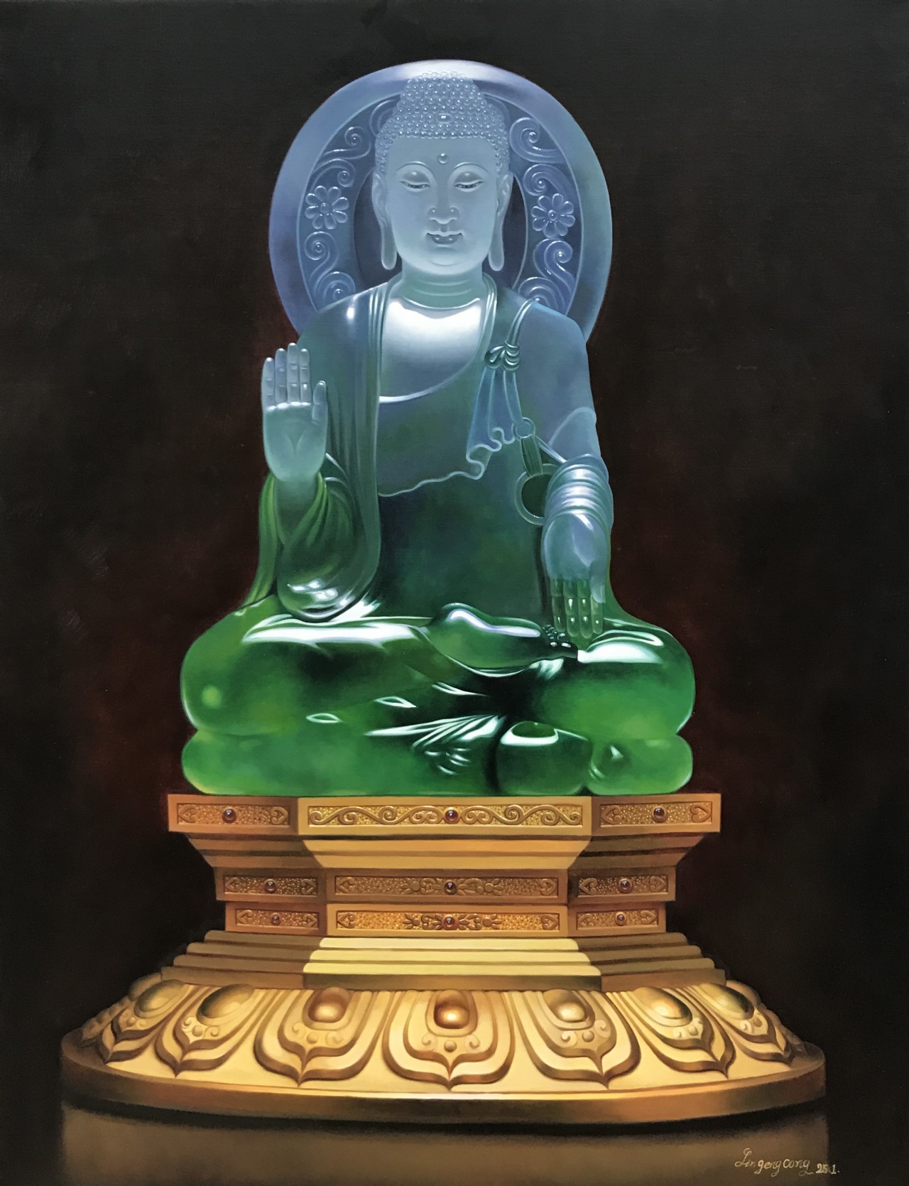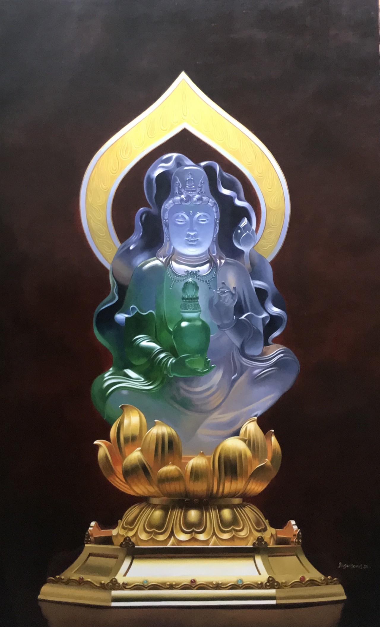 我国知名写实佛像油画家,国内专业创作写实翡翠佛像油画第一人。