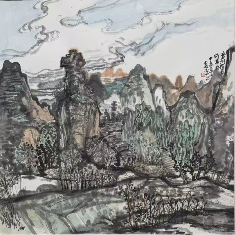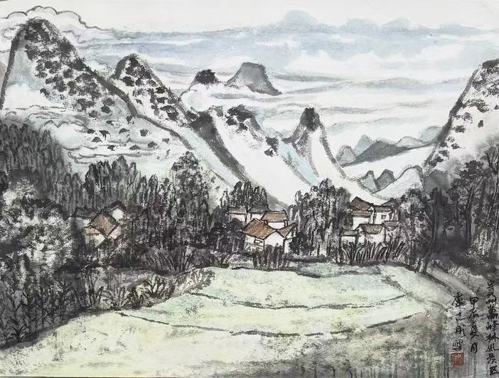 近一年来,我紧随"越过山丘"团队,与方金河、吴克强、杨玉泉等老师流连于木兰溪沿岸,绘绶溪烟柳、东阳古村风貌,摹东岩山秀色、萝苜田古韵,望雁阵塔倚天矗立……我亦随徐珮瑾老师远足,探贵州万峰林的雄奇、漳州东湖村的温婉、山西后沟的厚重。南北风物,各有千秋,写生之路,亦是修行之路。在行走中开阔眼界,在感悟中提升技艺,皆是对自然的赤诚对话。