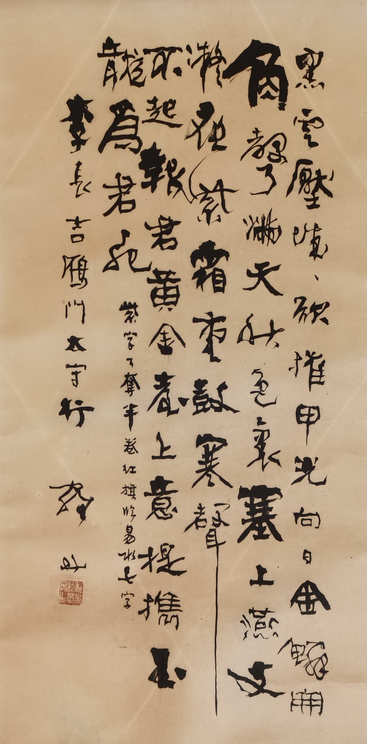 罗丹,原名桂秋,字稚华,号慧印居士,福建省连城县文亨乡人,当代著名书法家、诗人和画家。罗丹书法博采众长,自成一家,在中国现代书法史上自树一帜,被书法界誉为“罗丹体”,并写入中国书法史。“罗丹体”发展于罗丹早年临习赵孟頫、柳公权、黄庭坚等,兼习翁同龢行草与伊秉绶隶书,后深入研习颜真卿、汉隶及魏碑,约30岁时初步形成,历经数十年探索,融合颜真卿书体雄伟、汉隶古朴与六朝碑奇肆形成独特艺术形态。该风格主张“学古人之神不学其形”,呈现刚健中寓秀妍、凝重中见奇肆的特征。