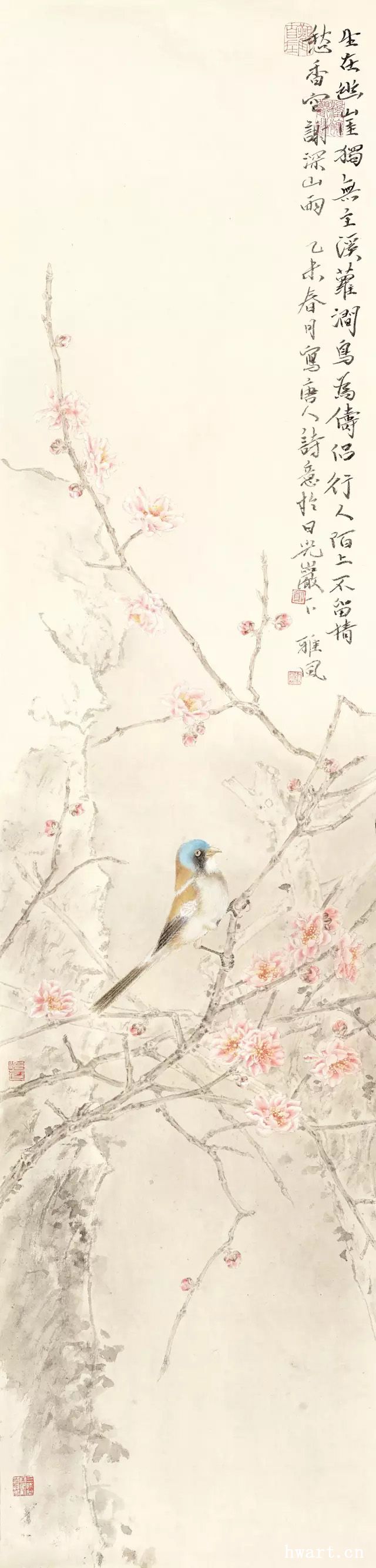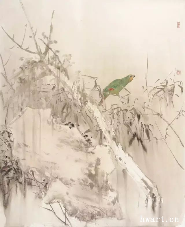 花鸟画是一种独特的艺术,体现了东方人细腻敏感的神经和含蓄和谐、精当儒雅的格调追求,此之谓上品。近年来,随着经济实力的提高,日渐增加的大小型画展上,十分抢眼的是幅面巨大的、精细到“超写实”程度的工笔花鸟画作品,令人喜忧参半,令人高兴的是很多青年努力从工笔画入手,踏实认真的从生活和大自然中寻求属于自己的创作契机,在制作上则力求精到完整。然而有时感到不足的是青年们耽于技术上的完备,似乎为了争得观众的眼球而“贪大求洋”,难免有意境不足,意趣阙如的问题,“技术工匠化”恐怕是中国画的真正的危机和隐患,因为在科技影像时代,技术选项是容易被打败的。这些年中国画之所以面对西方现代艺术狂潮不为所动,就是立足传统文化的丰富精神内涵,以文化底蕴胜,以精神境界胜,以雅俗共赏的民族性书写符号传达独有的精神密码。人类文化的多样性这是我们不可放弃的原则。