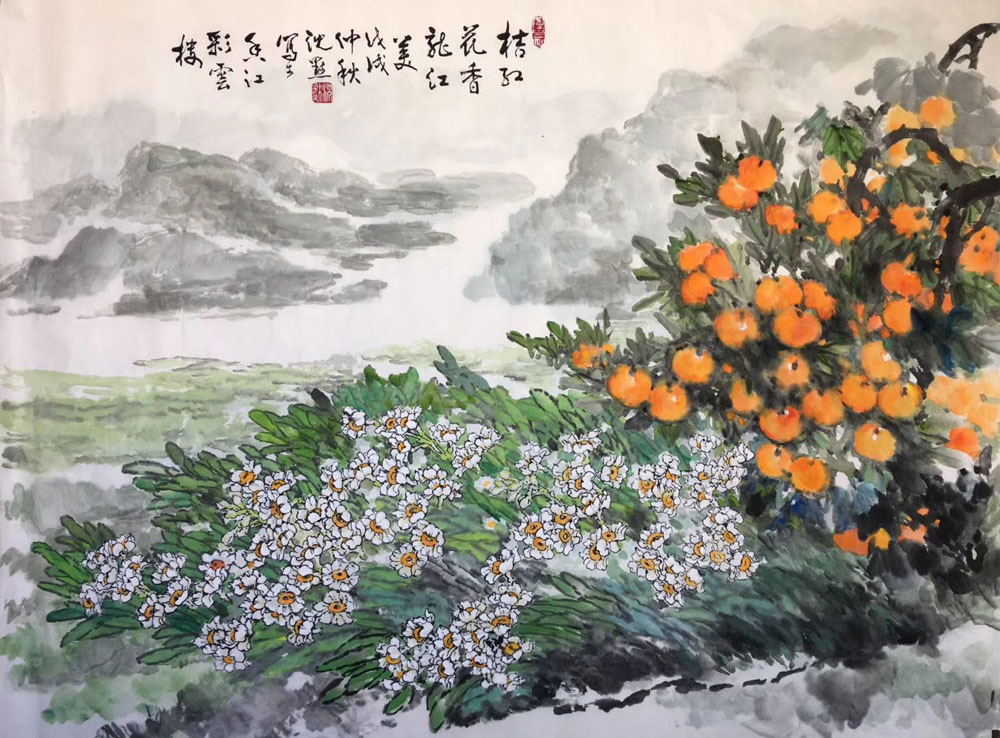 2019年应邀于漳州举办“桔红花香寄乡思——沈默漳州国画展”。