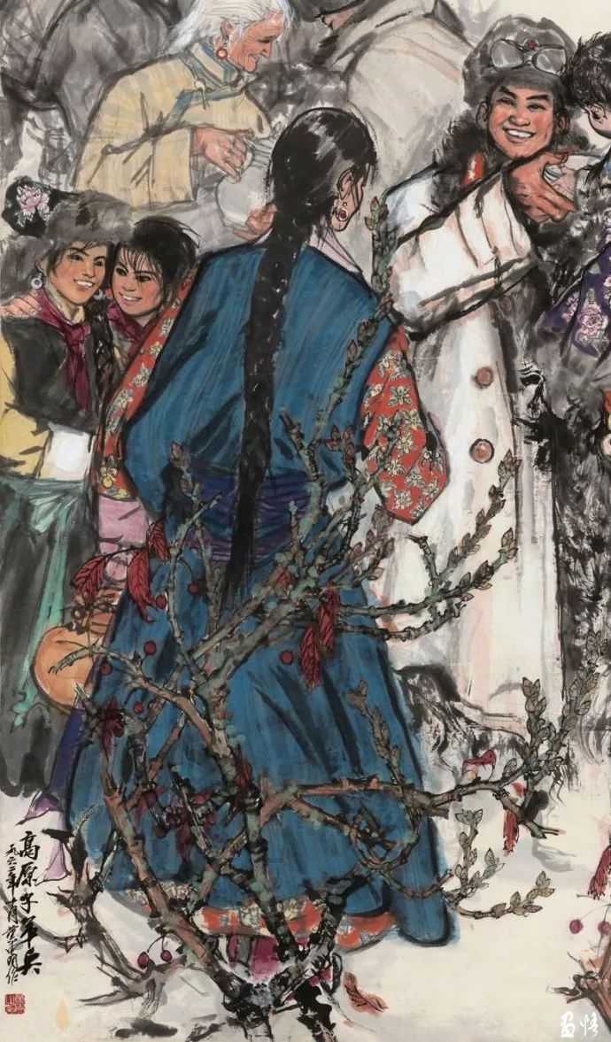 他所画的人物大有狂放原野的情怀和鲜活的个性,一扫传统中国人物画的旧风。最具风情的是那些边疆少女,西方绘画的色彩块面与东方柔美流畅的线条相交融,使他的绘画充满了灵性和神秘的遐思。