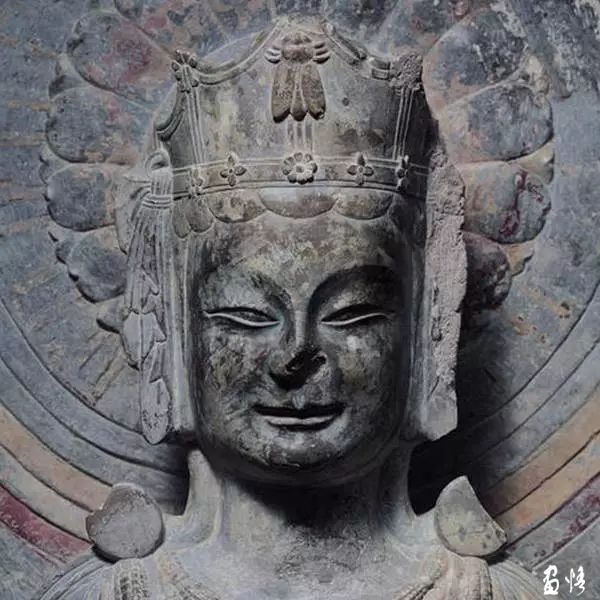 第三阶段,北齐在东魏的基础上佛像人体表现更加突出,佛衣少刻或不刻,通身施以方格图案并绘有人中像,佛衣着装方式由右领襟敷搭左肩并向背后收紧呈小圆领,下摆两侧贴体垂直。佛头低髻螺发及高宝冠菩萨造型较普遍,菩萨璎珞佩饰进一步增加。