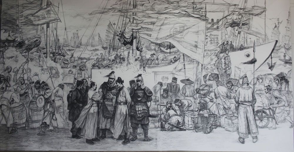 麻显钢 作品:隆庆开海 素描稿 2016年