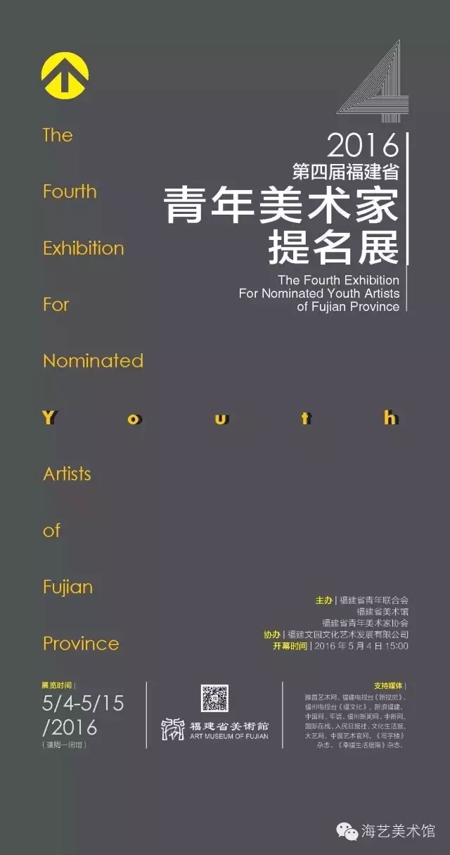 由福建省青年联合会、福建省美术馆和福建省青年美术家协会联合主办,福建文园文化艺术发展有限公司协办的“2016第四届福建省青年美术家提名作品展,将在2016年5月4号于福建省美术馆展出。