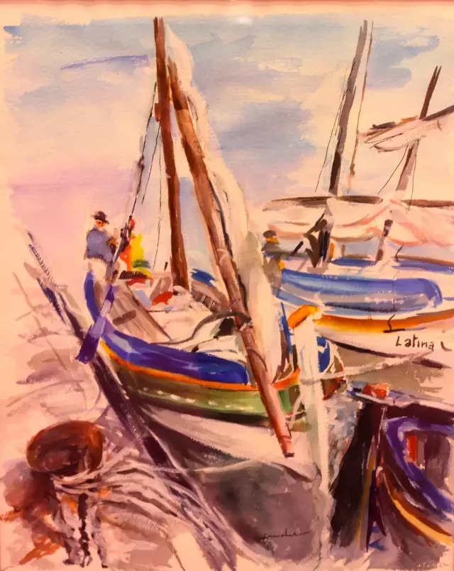 法国时艺空间 | 佛朗索瓦·奎晒作品《卡达罗斯的船》 50x60cm 水彩 2015