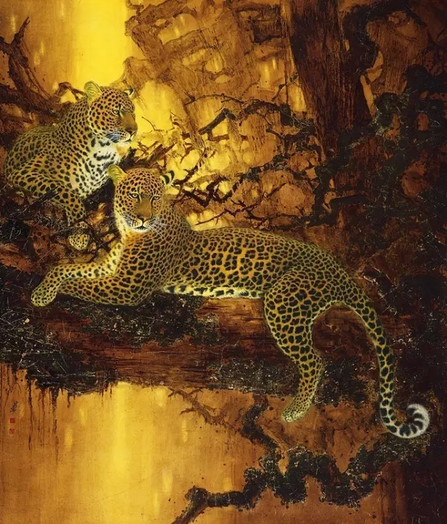林涛 是林金定老师的长子。他从工笔重彩入手,将其色彩的绚丽、丰富和形的写真发挥到极致,同时从写意画鸟中吸吮养分;最有特色的是他对肌理的运用,他追求的首先不是对形象的具体刻划,而是全幅的感受,画面的气氛和情境。尤其是他笔下的豹子充满善良、灵气和活力,闻名海内外。他的画是有现代感的,是从传统中产生出来的创新。