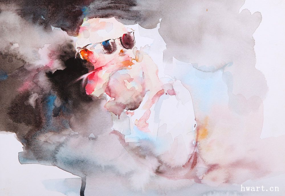 作品名称:《轻松》尺寸:26x37cm材料:纸上水彩