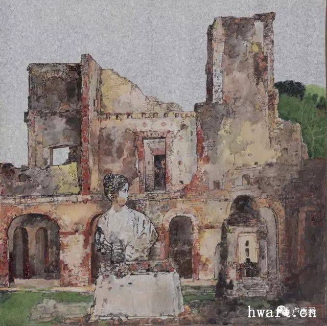 他充分發揮中國畫筆墨氤氳、神秘浪漫的詩性特質,又大膽運用大面積色塊的暈染和對比關係,營造出心理時空與歷史時空交互映射下的情感氛圍,在畫面之中滲透著引人深思的人文情懷,作品在鮮活的現代氣息與滄桑的歷史感之間自由穿梭切換。