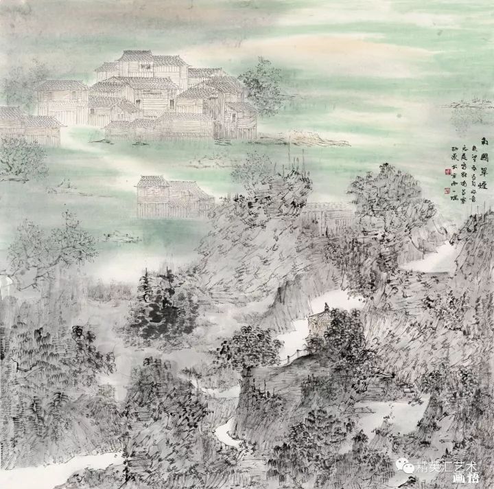 孙成慷以山居雅意疏泻缓冲,笔墨坚劲简洁饱见锋芒,营造境遇之和谐自得,即便淡淡的墨彩亦似有山呼海啸之飙风;曾军艺高度统一了装饰性的视觉追求与中国画诗意静逸的高雅审美,叠彩化境之间传递出对大自然的诗性追求与人文关怀;许伟清笔下的“梅”有着丰富的个性心理以及深入细腻的情感,千般柔情,万种姿态,无不传递出清雅秀丽、孤洁隐逸的神韵和品格;李国洲营造了峰峦苍翠云气叆叇的浑化效果,不见积重之束缚,而着意于玄幻色彩之弥漫,让人于缥缈之中别开想象之洞天;张秋桔把笔墨的意味、文化格调、当代审美趣向与青山绿水的固有表现能力很好地融合一起,形成了自己新青绿山水绘画的艺术风格,给人一种扑面而来的淳朴优雅的生活气息;郭庆志将水墨与青绿合为一体,既保留青绿山水的灿烂明艳,又激发了水墨的温蕴俊秀,画面明亮中流露淡雅,其又将山水画的古典韵致与时代气质相结合,给予这一古老的绘画风格以新的血液;周宗峦出于对传统笔墨和大自然物象的感悟,坚持对传统山水画的深化和多形式的追求,不断探索绘画语言,构建山水画和谐之美,形成笔墨当随心境的新境界。