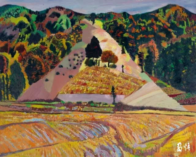 这副画是一幅北方的大风景写生,但星球君认为他并不是一幅真正意义上的写生作品,他没有去细化某些细节,还原实际景象,更多的是内化用自己的语言来表达出画的趣味性。