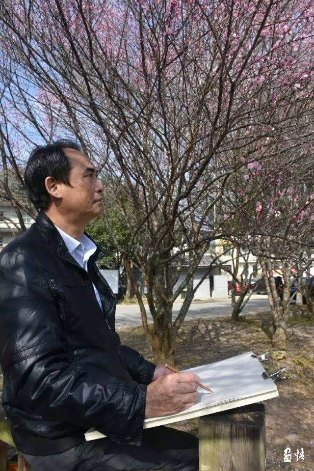 A:我从小嗜爱画画。在诏安县城东小学从一年级开始,教我们美术的就是徐序行老师,徐老师是闽南著名的小写意花鸟画家,他有个小女儿跟我同班,那时每次去徐老师家,对他挂在墙上的那些画作,我总是留连忘返,对徐老师那是膜顶崇拜。