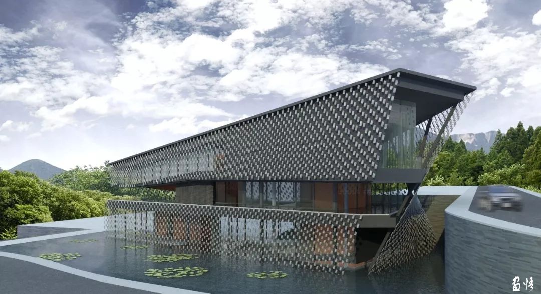 知美术馆位于中国成都新津⽼君⼭脚下,总建筑⾯积为2353平⽶。外形内敛、极具禅意,由国际建筑⼤师隈研吾设计,运⽤流⽔、⽡⽚等元素,使建筑与⾃然有机相融,空灵寂静,动静相宜,尽显⽣⽣不息、道法⾃然的东⽅哲学。美术馆VI系统由⽇本平⾯设计⼤师原研哉设计,由美术馆外观⽡⽚的元素构成,形成富有变化的⽔波纹样。