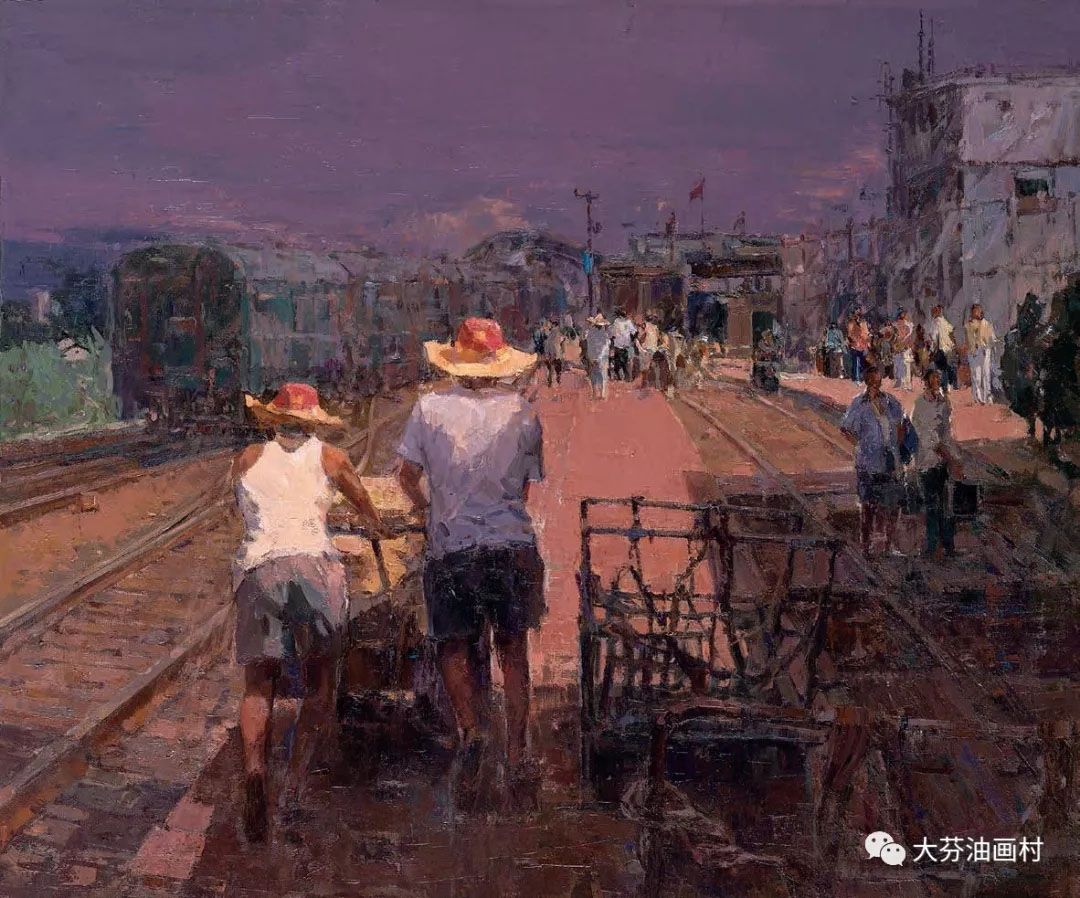 ▲《罗湖火车站1980》/ 罗明虎 / 125cm×145cm