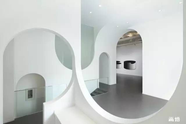 鸿坤美术馆白色的外立面在纷乱繁杂的街道中十分醒目。拱形的门寓意进入另外一个世界,在古典与现代的交融中进入空间,视线不由得会随流水般的弧形起伏而移动。墙面上的圆形镂空设计交错重叠,让艺术品和观者的想象力有了更完美的互动。